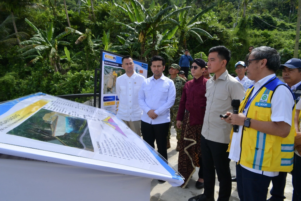 Wakil Presiden (Wapres) Gibran Rakabuming meninjau progres pembangunan Bendungan Bagong di Kabupaten Trenggalek, Jawa Timur (Jatim), Kamis (30/04/2026). Peninjauan ini menjadi bagian dari komitmen pemerintah dalam memperkuat ketahanan air, ketahanan pangan, sekaligus pengendalian banjir di wilayah selatan Jawa Timur (Jatim). Sejalan dengan arahan Presiden Prabowo Subianto, Wapres menekankan agar pembangunan Bendungan Bagong dipercepat dan diselesaikan