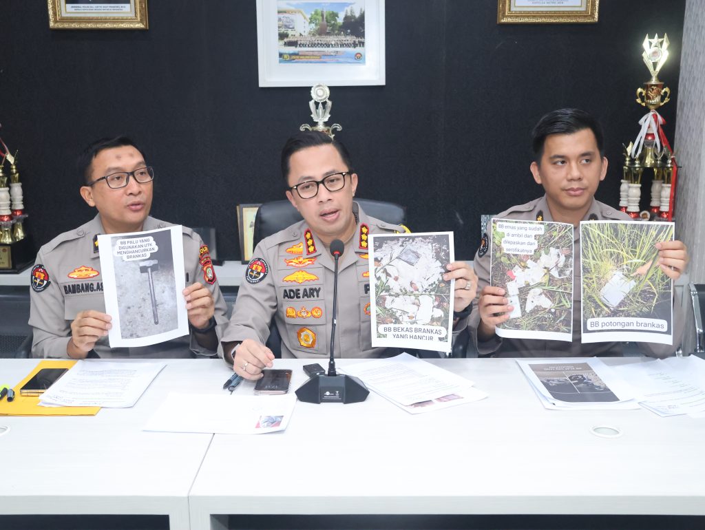 Kemudian, dari hasil pengungkapan ini, Ade menyebut telah mengamankan sejumlah barang bukti, di antaranya dua buah handphone, 11 lembar uang pecahan 100 dolar Singapura, uang sebesar Rp 65 juta, satu buah sepeda motor, serpihan brankas, dan 12 plastik pelindung emas Antam.