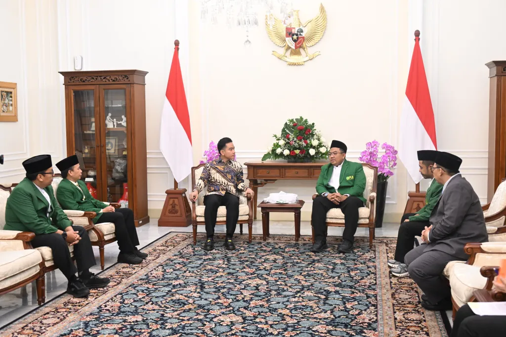 Wakil Presiden (Wapres) Gibran Rakabuming menerima audiensi Pengurus Pusat Persatuan Umat Islam (PUI) di Istana…